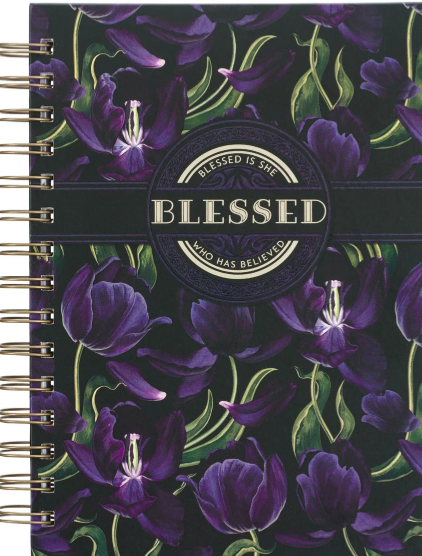 Journal W/Scripture Floral Blessed Luke 1:45 Bible Verse Black Purple 192 Ruled Pages, Large Hardcover Notebook, Wire Bound